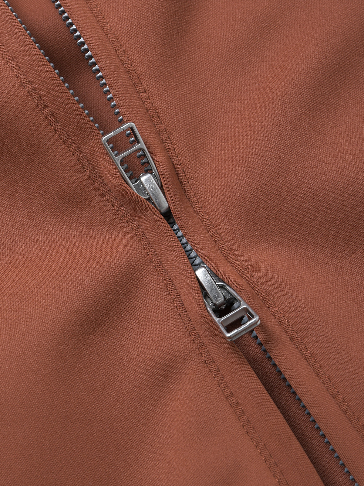 フルダル糸で編んだマットジャージーを採用。光を抑えた滑らかな表面と自然なストレッチで軽さと落ち感を両立。肩から袖へ流れる同色の二本ラインが抑制されたスポーティーさを添え、ワイドかつ短丈のシルエットを縦に整えます。胸元にはチーフポケットを想起させる片玉縁ポケットを配し、テーラリングのニュアンスをひそかに挿入。リブ仕立てのスタンドカラーとラグランスリーブは動きに滑らかに追従し、ダブルジップ仕様。ポケットはファスナー付きで外観をクリーンに保ちます。ウォッシャブル仕様でケアも容易。同素材パンツとセットアップで統一感あるスタイリングが可能。ブラックとブラウンの2色展開で、ラウンジ、タウン、スイングまでシームレスに対応。